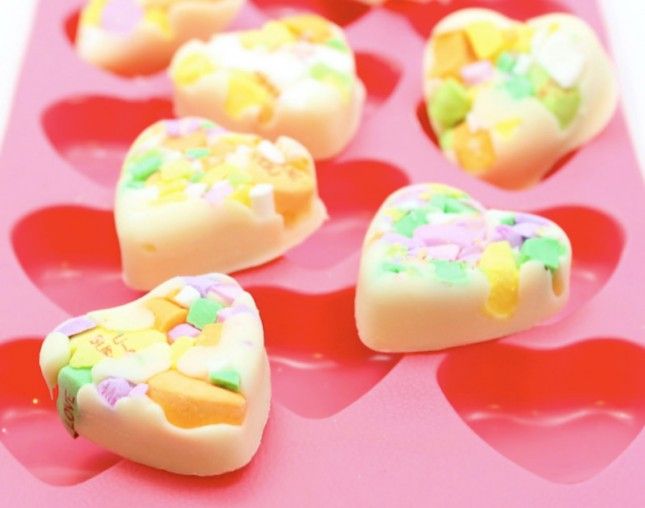 35. Conversation Heart Bark: While Im not exactly a bluebird-on-my-shoulder kinda gal, I have no ill will whatsoever about Valentines Day. We’re not big on celebrating in my house, but I promise, there is no bitterness involved in the smashing of conversation hearts necessary to make these. And I also realize, dear reader, that the smashing of conversation hearts (via The Decorated Cookie)