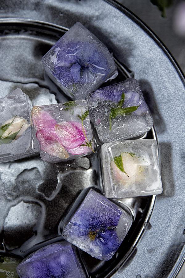 39. Edible Flower Ice Cubes: Photography by Chia Chong Recipe and Styling by Libbie Summers A jaunty addition to any cocktail. Edible Flower Ice Cubes makes 12 extra large cubes Ingredients: Distilled water, boiled and cooled 2 extra large ice cube trays (we used silicone “bourbon”… (via Salted & Styled)