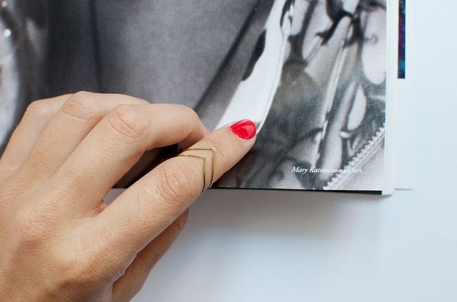 33. Gold Chevron Ring: When I was at New York Fashion Week I saw a girl wearing rings like these, we were waiting in line for Mara Hoffman and I wanted to ask her where she got them but didn’t such a shame. In an effort to recreate her style I decided to craft some of my own! You need: – Thin gold wire (mine was… (via A Pair & A Spare)