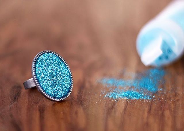 37. Glitter Ring: I have a fun and easy craft to share with you today. This DIY glitter ring is so pretty, and looks so professional.I used one of my favorite products, Mod Podge Dimensional Magic, which really gives it a finished, polished look. Outside of drying time, this ring only takes minutes to make, and gives a (via no. 2 Pencil)