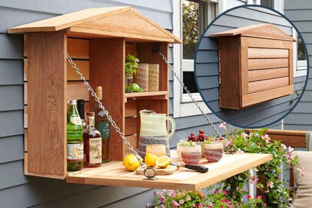 26. Fold-Down Murphy Bar: Use cedar lumber and a doweling jig to create an outdoor piece that can handle its share of liquor (via This Old House)