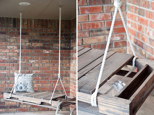 36. Porch Swing: I love to make use of things no one else wants. I’ve wanted a swing for my front porch for a while so I started looking online. I found a wooden swing that I loved and immediately got the idea of using a pallet. I found a pallet that was going to be thrown away and started to work (with hubby’s help (via Sheryl Salisbury Photography)