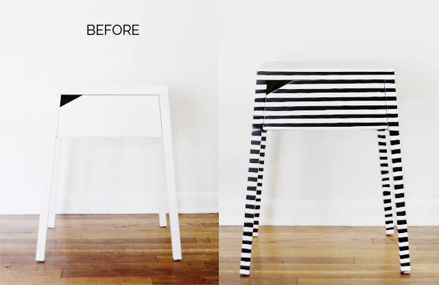 8. Striped Nightstand: Yesterday I shared the floral nightstand tutorial and today Im sharing the other half. This is a tutorial for this black and white striped nightstand, also made with a SELJE nightstand from ikea. I really wanted some fun nightstands that went together. Since they have the same shape, why no do a floral and a (via See Kate Sew)