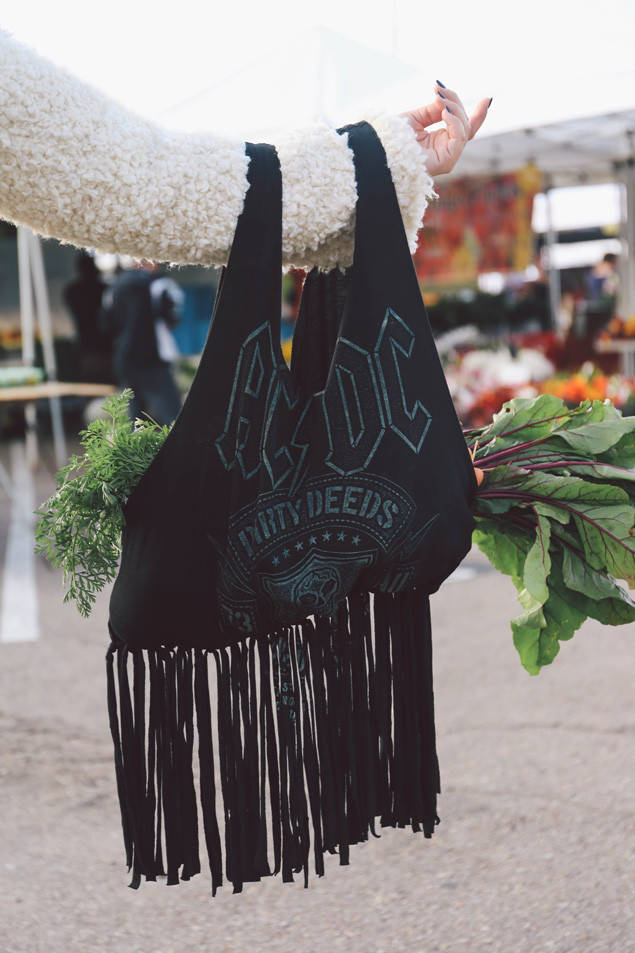 20. No Sew Reusable Grocery Bag: I haven’t done a Fashion Friday DIY for sooooo long, and since its a new year, its definitely time! This DIY was inspired by Cassey from Blogilates!I always have my car stocked with reusable shopping bags for last minute farmers market and grocery shopping trips, and thought this do it yourself bag/tote was the cutest Read more… (via Rabbit Food for My Bunny Teeth)
