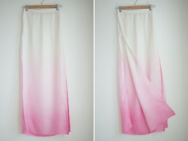 27. Dip Dye Side Split Maxi Skirt: Dip dyeing is so addictive, its amazing I havent dip dyed everything I own. I made this maxi a little while ago by dying some gorgeous white silk and then making a maxi skirt out of it, I chanelled a little bit of sass & bide by giving the skirt two large side splits. Here’s a rundown on… (via a pair & a spare)