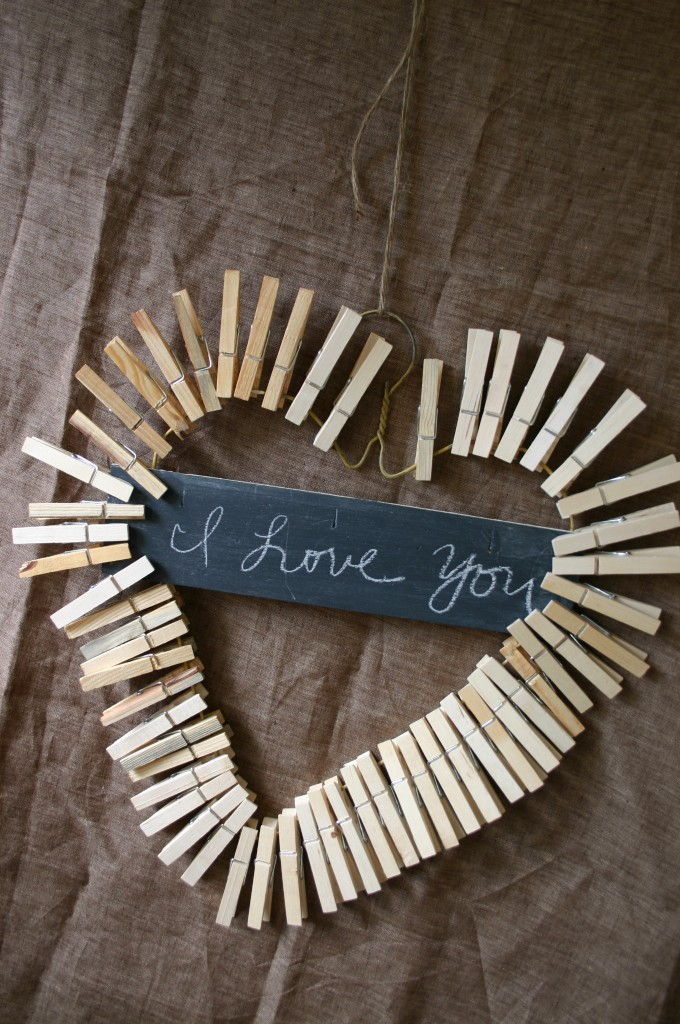 39. Heart Wreath: This is a wonderful project for children – it is super easy. You can pick up bags of clothespins at your local home improvement store, dollar store or supermarket… (via Family Chic)