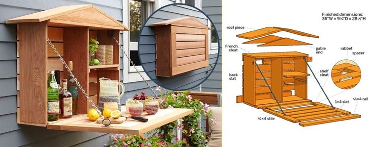 23. Fold-Down Murphy Bar: Use cedar lumber and a doweling jig to create an outdoor piece that can handle its share of liquor (via This Old House)