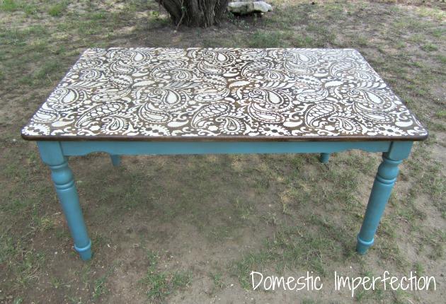 7. Paisley Stenciled Table: Lets talk stenciling. Now, Ive done my fair share of stenciling (like on my pantry, toy box and end table), but its always been with a homemade stencil and it takes F.O.R.E.V.E (via Domestic Imperfection)