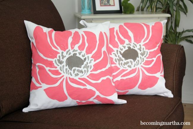 17. Stenciled Accent Pillows: How to Easily Paint Pillows with fabric paint and a stencil! (via Becoming Martha)