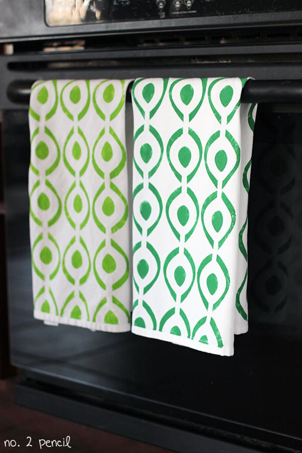 30. Stenciled Tea Towels: A few weeks ago, I received a box from my friends at Plaid that included this super cool FolkArt stencil and some FolkArt Acrylic Paints. I thought it would be fun to use the stencil on fabric and make these stylish and colorful tea towels. I really love how they came out, and they were (via No. 2 Pencil)