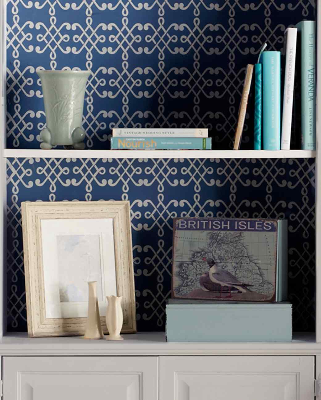 34. Trellis-Stenciled Bookcase Backsplash (via Martha Stewart)