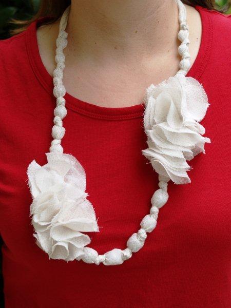 19. Akela Necklace: Anthropologie is such a great source to steal ideas from for inspiration. One of my favorite things to do late at night is browse through the Anthro site with a cup of hot tea. Gets my brain going. Much to my delight Anthro just added a darling little fabric and bead… (via Flamingo Toes)