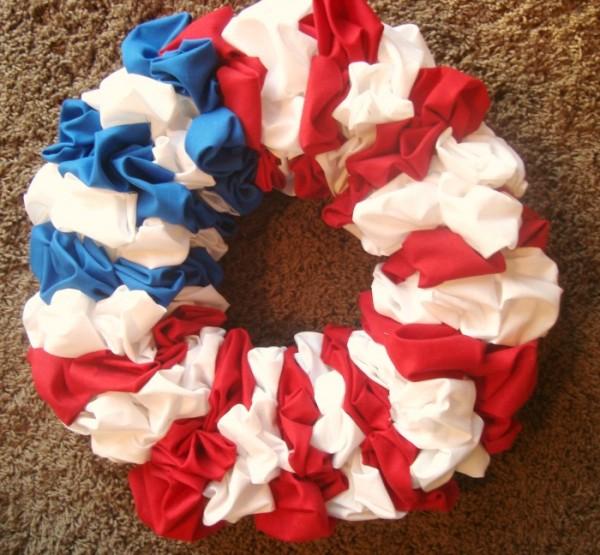 20. Fabric Scrap Wreath: While at my little sewing day with my girl friends, Janis was working on a little project and I just had to share! It is a perfect -sit in the shade- project. Janis saw it made with a heart shaped straw wreath, but all that was found was the circle one.—- love either one. (via Patchwork Posse)