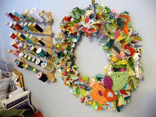 25. No Sew Fabric Banner: I made a little no-sew fabric banner this morning for my daughter’s kitchen, and thought I would share how I did it. Here is a collage of photos I took in her happy Anthropologie inspired kitchen. This was my inspiration…. (via Pink Roses)