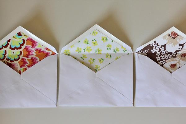 27. Fabric Lined Envelopes: This post was originally posted at Ucreate a few months ago. But I’m reposting it in case you missed it! You should do this to your Christmas card envelopes.DIY lined envelopes with fabric and paper scraps! I have a big scrap pile and I wanted to use up at least a little of it. So (via See Kate Sew)