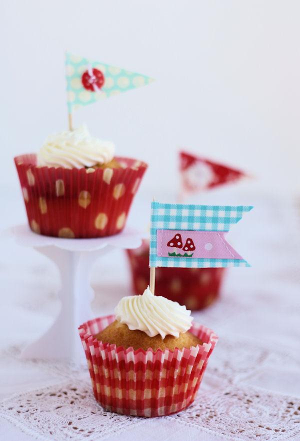 29. Fabric Cupcake Flags: We are thrilled to be guest posting today over at Whip Upwith a tutorial on how to make some Fabric Cupcake Toppers. They are such a fun project to use up pretty fabric scraps and would work so well for lots of different occasions high tea, birthdays, Christmas etc. Drop on over to Whip…Read More (via A Spoonful of Sugar Designs)