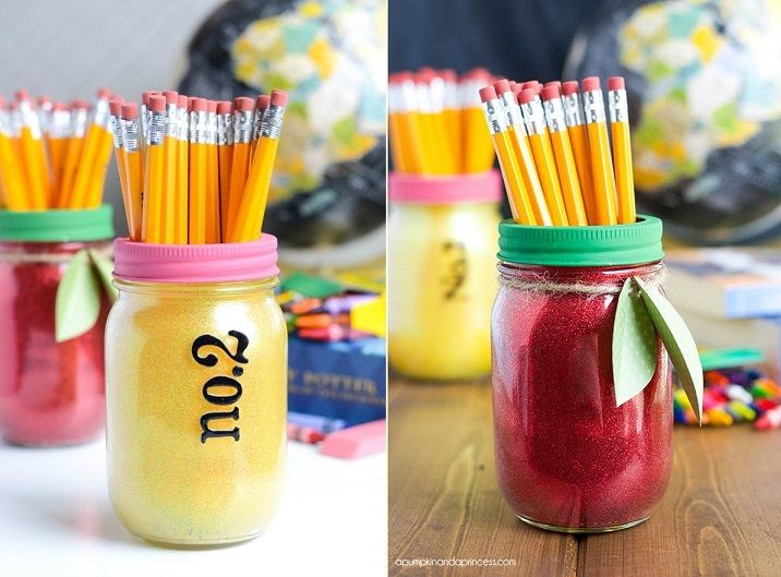 8. Glitter Mason Jar: How to make glitter mason jar teacher gifts – number 2 pencil mason jar and apple jar! (via A Pumpkin and A Princess)