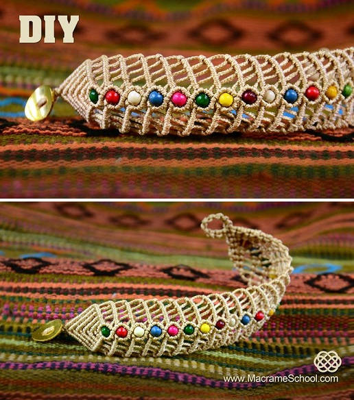 50. Macramé Fishbone Bracelet with Beads (via Macrame School)