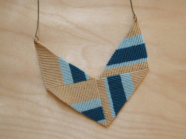 19. Knotted Chevron Necklace: A second version of the knotted chevron necklace making use of the same basic knot but in a slightly different arrangement to create a completely different stripe pattern! This necklace is made with double half hitch knots. Most friendship bracelets are made with just half hitches be sure to look over this diagram Read More (via How Did You Make This?)