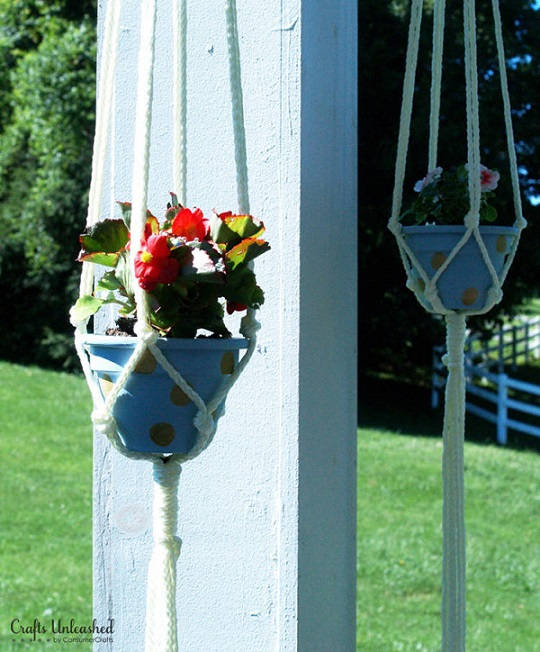 20. Polka Dot Handing Planter: Dress up your front porch with a simple and cute polka-dot DIY hanging planter or two! Perfect project for anyone looking to add some greenery to a space! (via Crafts Unleashed)