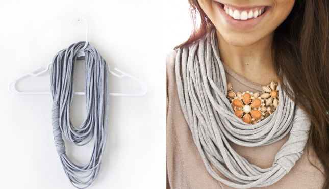 9. Multi Strand Scarf: I am a huge fan on no-sew projects from recycled clothing. If you were a fan of my no-sew DIY Workout Shirt,you will enjoy this one as well. Plus they will look trschic when worn together! Behold, a scarf that is perfectly lightweight and easy-to-wear to your Yoga or Bar Method class and stylish enough Read more… (via Rabbit Food for My Bunny Teeth)