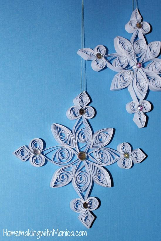 47. Quilled Snowflake Ornament: Pin it here. I’m just having so much fun creating pretties for Christmas. Today, I’m going to show you how to make these quilled snowflake ornaments. Please leave a comment if you have any q… (via Homemaking with Monica)