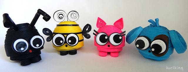 34. Ant, Bee, Cat and Dog: quilling, 3D quilling, ant, bee, cat, dog, animals, cute, little, paper, instructions, tutorial (via Kurlikins)