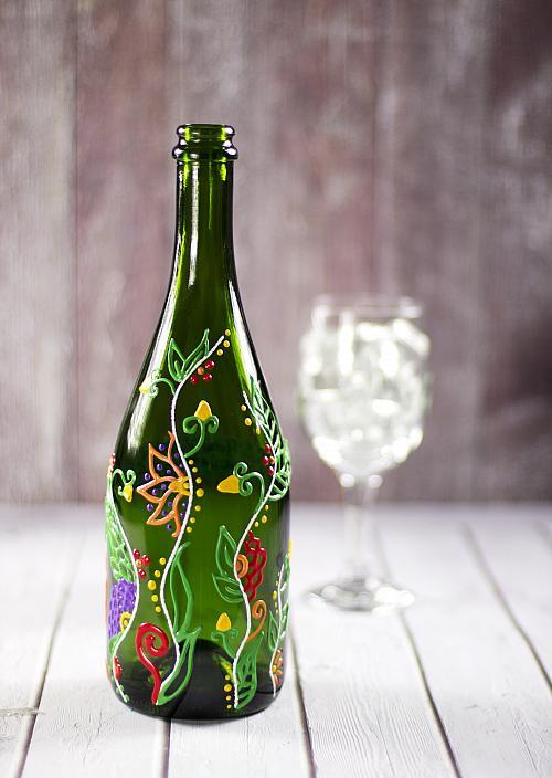 24. Floral Vine Design Upcycled Wine Bottle: Create this project with Americana Gloss Enamels Add a bright floral motif to an old wine bottle with Americana Gloss Enamels (via DecoArt)