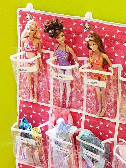 2. Pockets on over-the-door shoe organizers are just the right size for storing small toy: Follow these tips to bring order to every room in your home. (via Better Homes and Gardens)