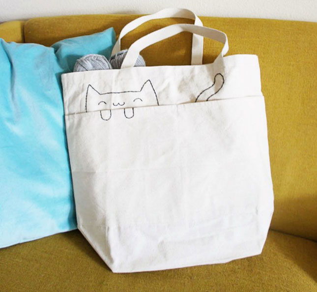 24. Embroidered Tote Bag: ezebeeMag guest blogger Becky Helms from the blog The Pink Samurai is sharing with ezebee users a fun and simple DIY for catlovers and crafters alike. Try it now! (via ezebee magazine)
