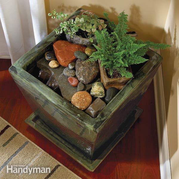 11. Indoor Water Fountain: Enjoy the sound of bubbling water falling over rocks all year round with this miniature, plant-lined stream and waterfall. All you need is a container, a pump and some favorite beach stones. (via The Family Handyman)