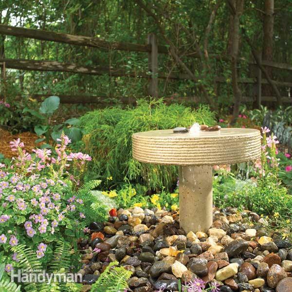 22. Garden Fountain: Modeled after an old millstone, this little fountain is the perfect size for a patio or small backyard. Constructed from concrete and common building material, you can construct it in a weekend. (via The Family Handyman)
