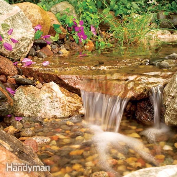 37. Backyard Waterfall and Stream: Create a rippling, rock-lined stream with multiple waterfalls in your backyard. Use gravel and stone filters and a heavy-duty pump to reduce maintenance and maintain water clarity. (via The Family Handyman)
