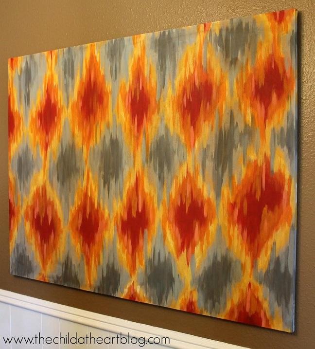 12. Ikat Canvas: Im a huge fan of ikat patterns of all shapes and sizes and I bought this plate from Target a long time ago and have been wanting to copy its pattern forever. I got some spending money and went straight to Michaels and bought this HUGE canvas. I picked out some of my favorite colors of paint and got started. It was a learning process and I changed it even after I thought I was done (via Child at Heart Blog)