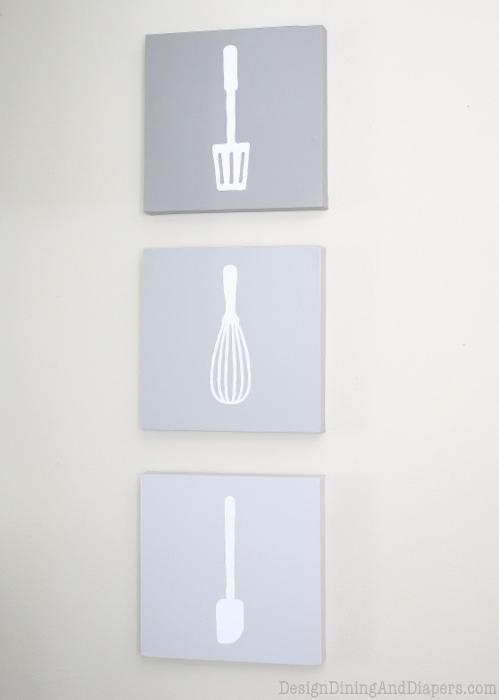 42. Ombre Kitchen Wall Art: Now onto the good stuff. Today, I’m sharing an easy way to make customized wall art for your kitchen! This Ombre Kitchen Wall Art can be made in any color or size to complement your space and it is relatively easy. (via Design, Dining and Diapers)