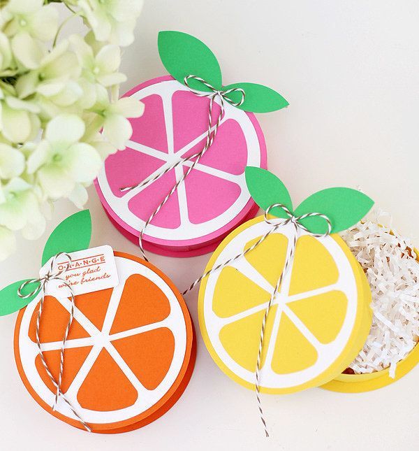 48. Citrus Treat Boxes: I might be a little obsessed with today’s DIY. Ever since I saw THESE adorable coasters, I knew I wanted to create something similar minus the sewing because I’m not so great at sewing. Paper though? That I can handle and Ill bet that you can too, once I walk you through the process. As a lucky member (via Damask Love)