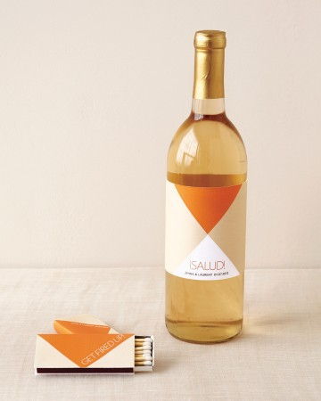 49. Wine Bottle Labels: Tools and Supplies 8 1/2-by-11-inch white or cream paper (65-pound “Classic Crest” cover paper; 2 wine labels per sheet)Craft knife Metal ruler Cutting surface Double-sided tape 750ml bottles of wine (not sparkling wine or Champagne)Basic How-To1. Open our PDF file, and replace the placeholder text with your own (you only need to do this in one box; the form will automatically fill in the rest). Print the file. Each sheet of paper will give you two labels.2. Use the craft… (via Martha Stewart Weddings)