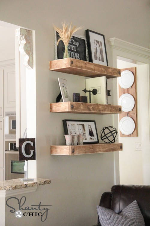 14. Floating Shelves: Build simple and inexpensive DIY Floating Shelves by following this tutorial and FREE woodworking plans! (via Shanty 2 Chic)