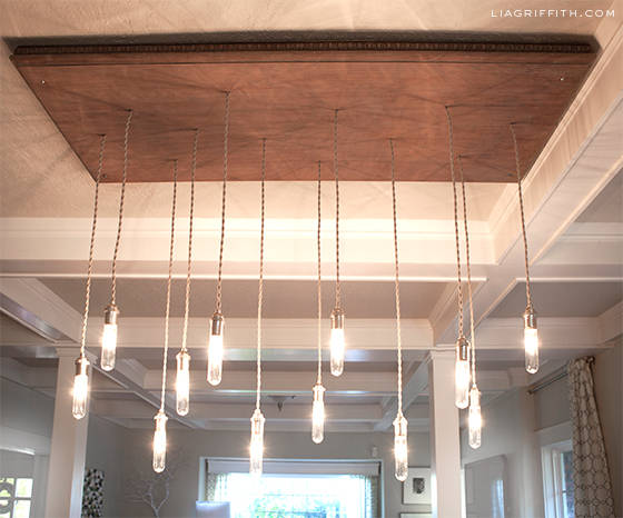 19. Industrial Edison Style Chandelier: Many of you have asked about my DIY industrial chandelier. As I promised, here is the tutorial for my dining room, and now kitchen bar lights. The base of my chandeliers are made from a recycled coffee table & cabinet door. The vintage reproduction electrical parts I found on Etsy at Snake Head Vintage. I… (via Lia Griffith)