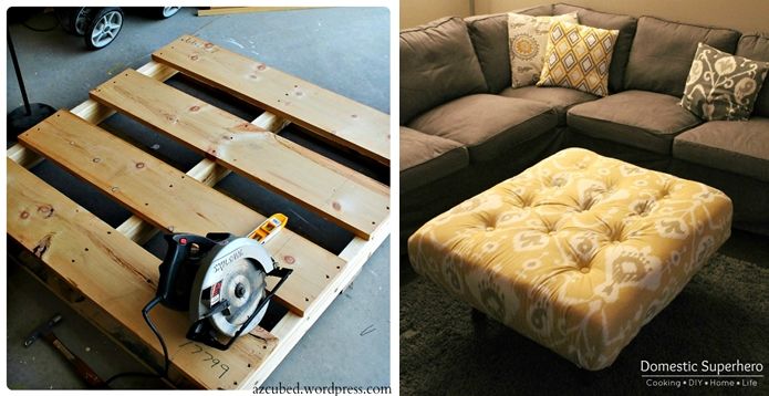 25. Tufted Ikat Ottoman from Upcycled Pallet: If you are on Pinterest, it’s likely you have seen lots of various pallet projects. Pallets are wooden squares that are used as bases to ship items. They are usually reused or discarded… (via Domestic Superhero)
