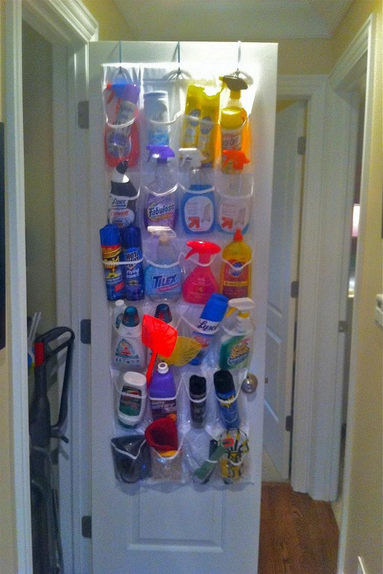 33. Cleaning Supplies in a Shoe Organizer (via Whine & Cheez)
