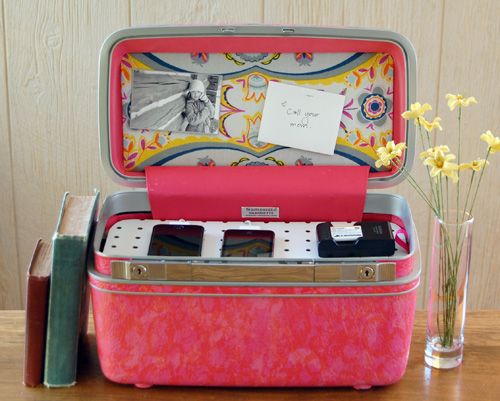 43. Vintage Suitcase Charging Station: Your home for all things Design. Home Tours, DIY Project, City Guides, Shopping Guides, Before & Afters and much more (via Design Sponge)