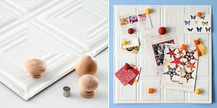 46. Make an Inspiration Board with Tin Tiles, Drawer Pulls and Magnets: Turn ordinary household finds into unexpected storage solutions. (via Better Homes and Gardens)