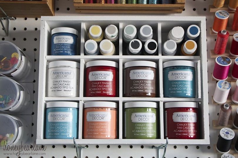 48. Chalky Finish Paint Organizer: I love Chalky Finish paints and this paint organizer is the perfect thing to store them! (via HoneyBear Lane)
