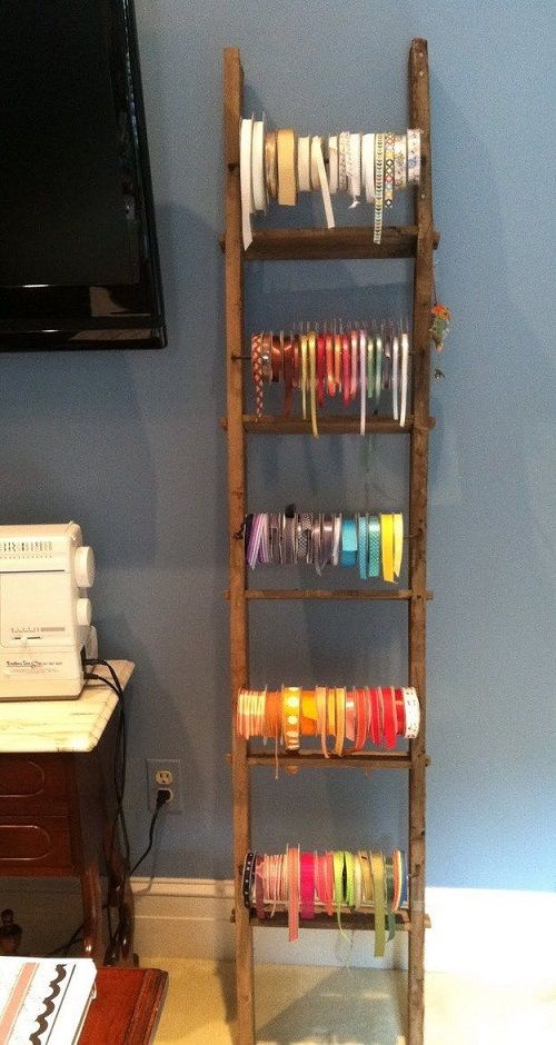 25. Organize Your Ribbon Collection on an Old Ladder (via The Daily Marker)
