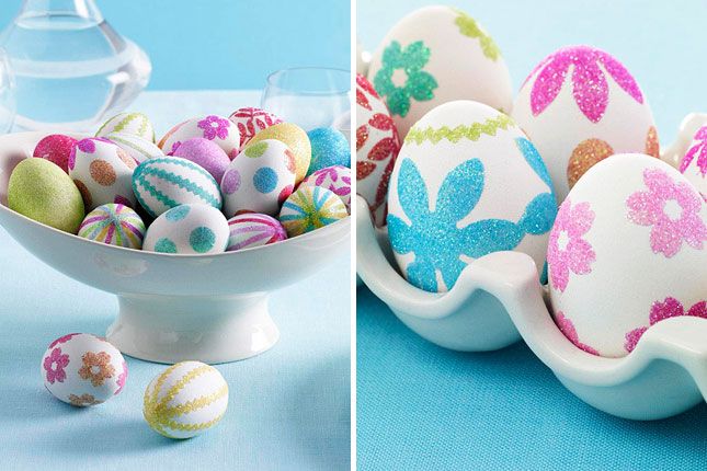 3. Glitter Stickers: We hatched a few simple egg decorating ideas, no messy dyes needed. Plus, brighten your home with a cheerful floral wreath. (via Family Circle)