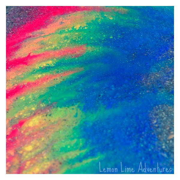 47. Sidewalk Chalk Art: Puddles: When the first day the snow melted we couldn’t wait to try some sidewalk chalk art, I never imagined we’d stomp the winter snow into bright spring puddles. (via Lemon Lime Adventures)