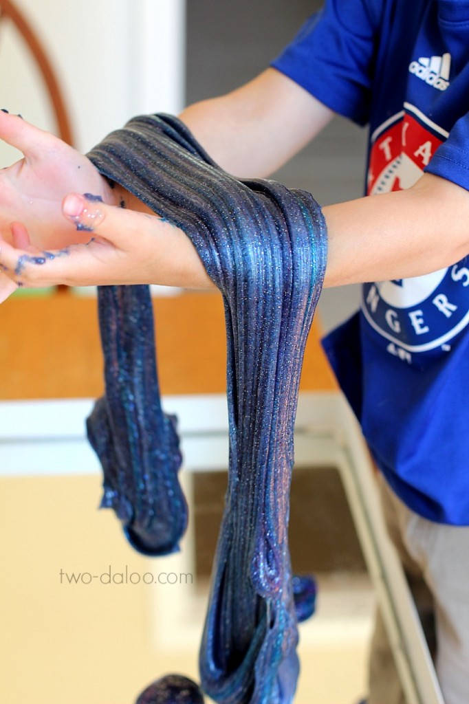 17. Make a Galaxy Slime: Make this beautiful, sparkly, stretchy slime that looks just like the swirls of a galaxy and keep your preschooler entertained for hours! (via Twodaloo)