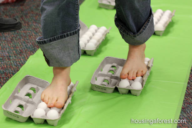 19. Walking on Raw Eggs: This simple experiment that just goes to prove how strong an egg really is. Your kids will be amazed with what happens with they try walking on raw eggs. (via Housing a Forest)