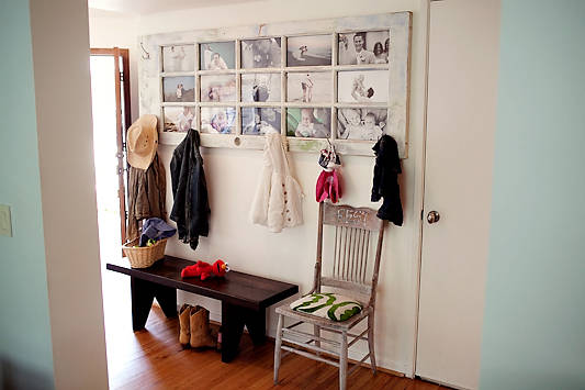 13. Old Door Picture Frame and Coat Rack: We have been in our new house for over a year and up until now, our entry way wall has been a lonely, barren white wall. Its the first thing you see when you step inside our house. So, I (via Photog Mommie)